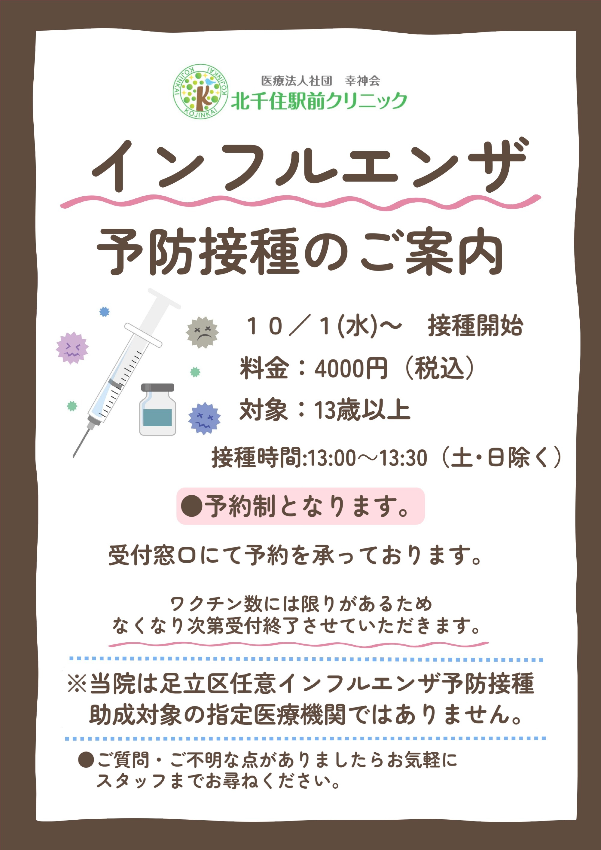 令和7年度インフルエンザ予防接種の予約を開始いたします。
